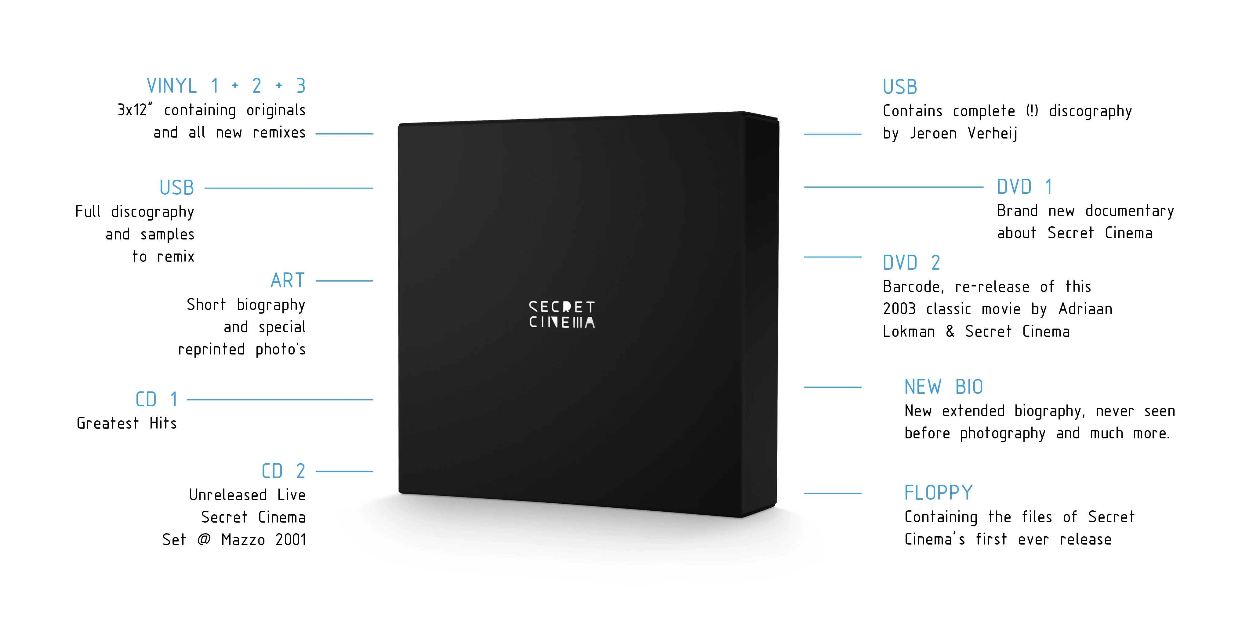 In 2014 I was tasked to create a new visual identity celebrating his upcoming 25 years anniversary as a dj/producer in 2015. The end result was a big and beautiful silver embossed logo luxury box including many collectibles and wanna-haves from Secret Cinema's rich and longstanding career so far. Some items were re-released and some were made available for the very first time and only once. The box was signed and numbered and limited to 500 copies. I designed and co-published the box during my time at Mary Go Wild.
