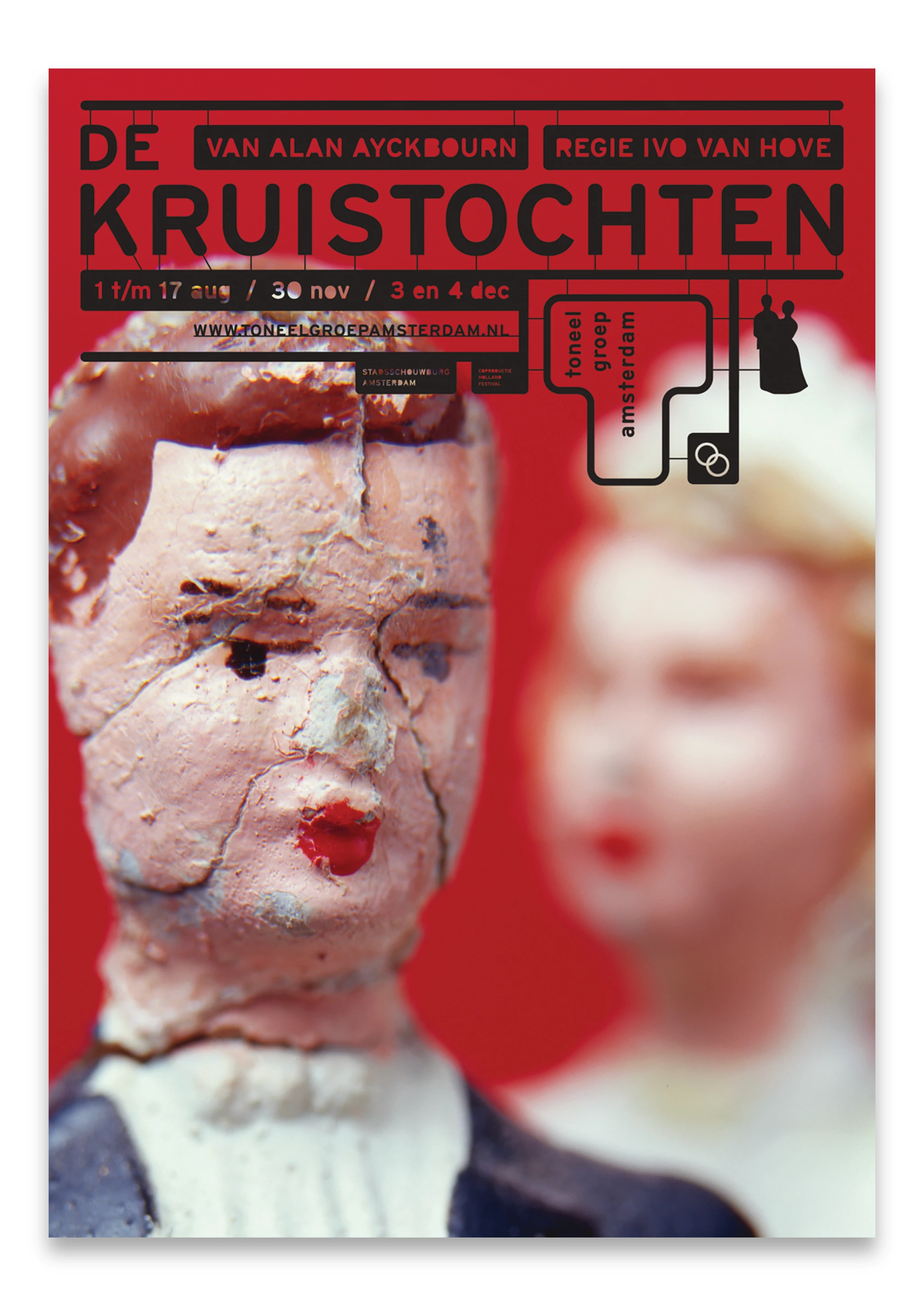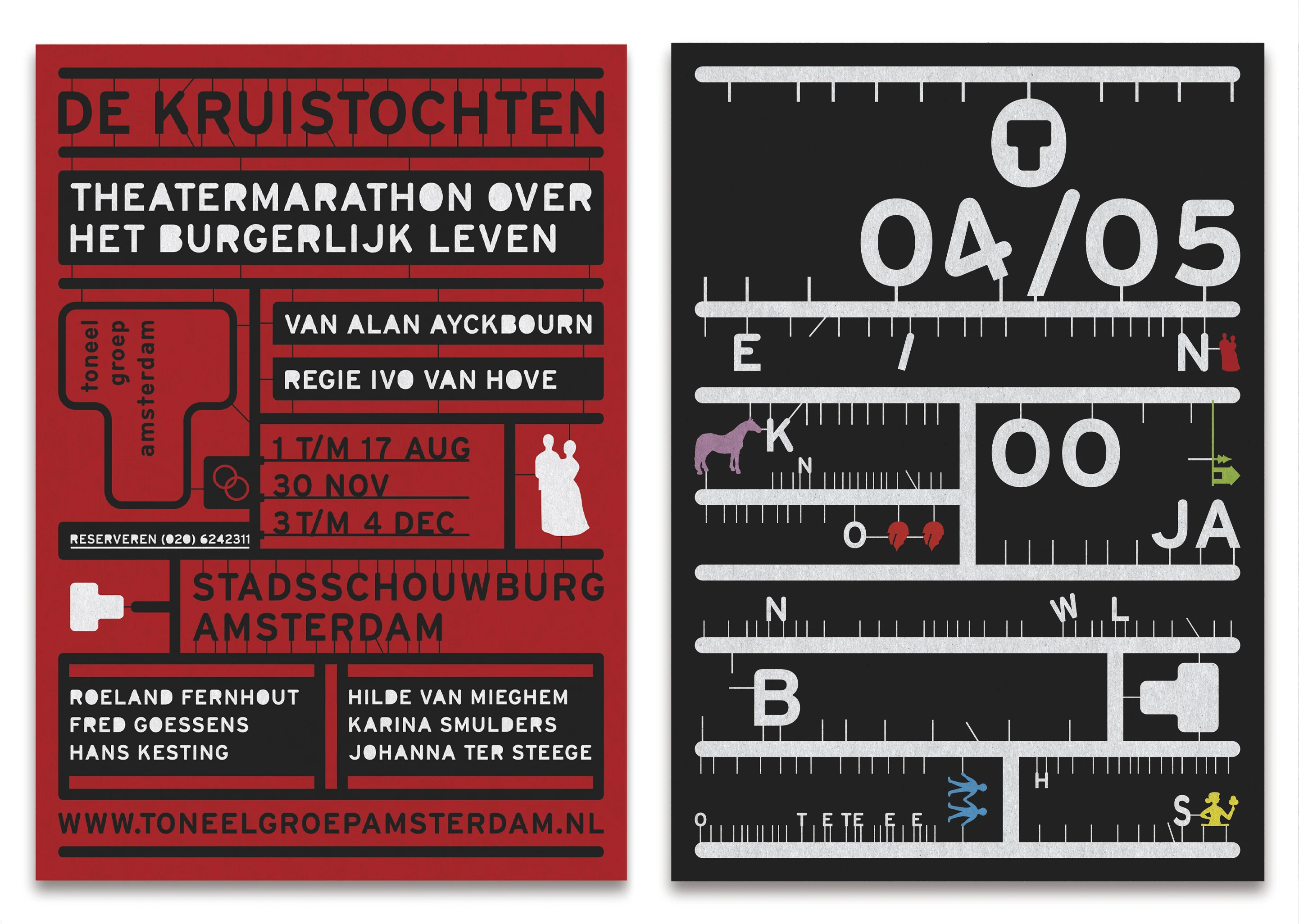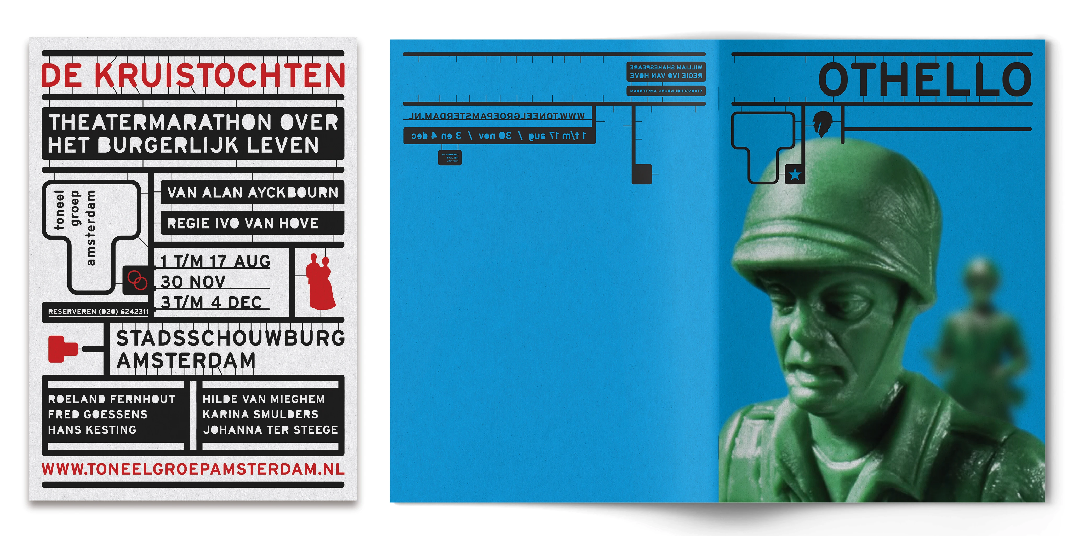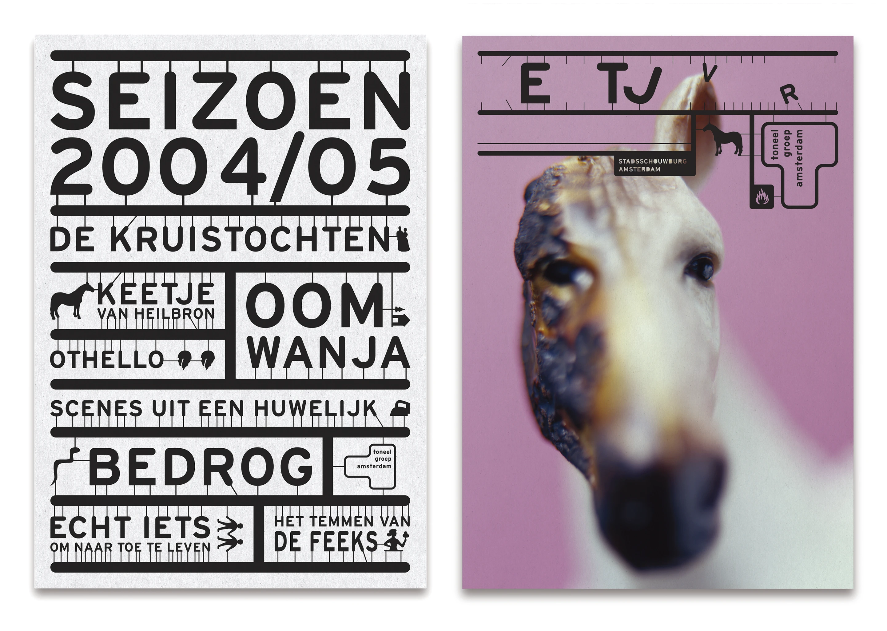 I always looked up to the legendary designers who created bold creative campaigns for big cultural and commercial organizations. Who had their portfolio pages in big yearbooks and their awesome posters plastered all over cities. In 2004 I was freelancing for one of them: Koeweiden Postma Associates and they had created the visual identity and logo for one of those big cultural campaign clients: Toneelgroep Amsterdam (nowadays ITA). So when we were asked by the Toneelgroep to join the pitch for a new visual campaign we really tried hard to win them over and have those cities plastered with our work. We had a few days, we came up with an idea and presented the concept, but unortunately didn't win. I still like the idea and concept though.